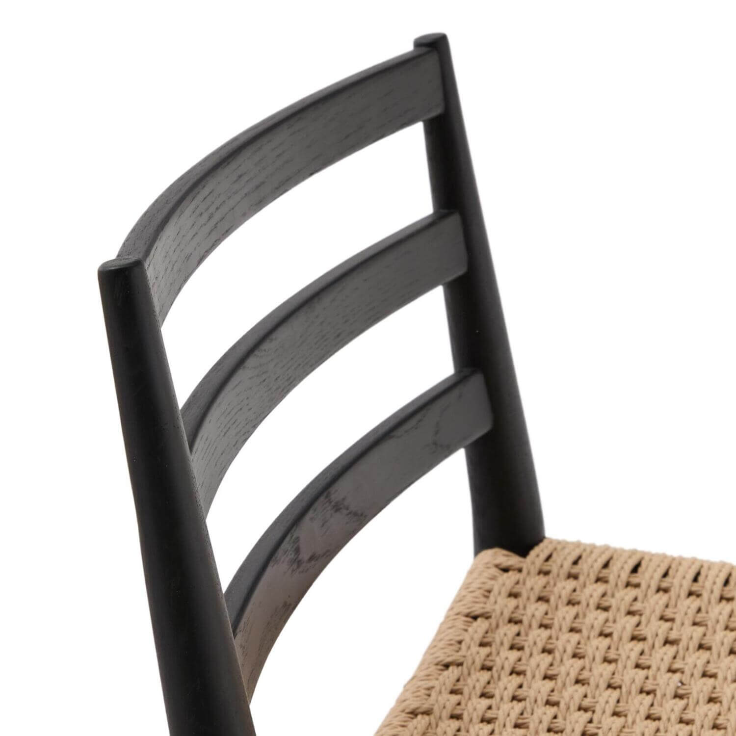 Dubové drevo sa pýši svojou jedinečnou kresbou, ktorá do interiéru prináša teplo, eleganciu a nadčasovosť. Sedák je starostlivo ručne tkaný z kvalitného papierového povrazu, čo dodáva každému kusu originálny vzhľad a jemnú textúru.