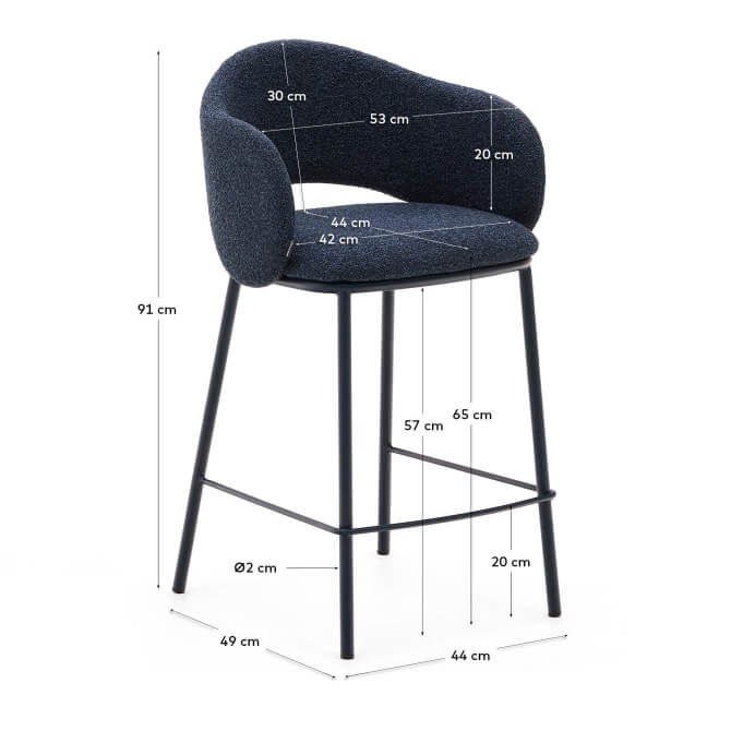 Čalúnenie z veľkoštruktúrovanej modrej ženilky zaručuje príjemný a komfortný pocit pri sedení, zatiaľ čo oceľové nohy s modrým povrchom podčiarkujú jej sofistikovaný vzhľad. Vnútorná konštrukcia je vyrobená z certifikovaného dreva FSC Mix Credit, čo znamená, že je zodpovedne získané z FSC certifikovaných lesov a kontrolovaných zdrojov.