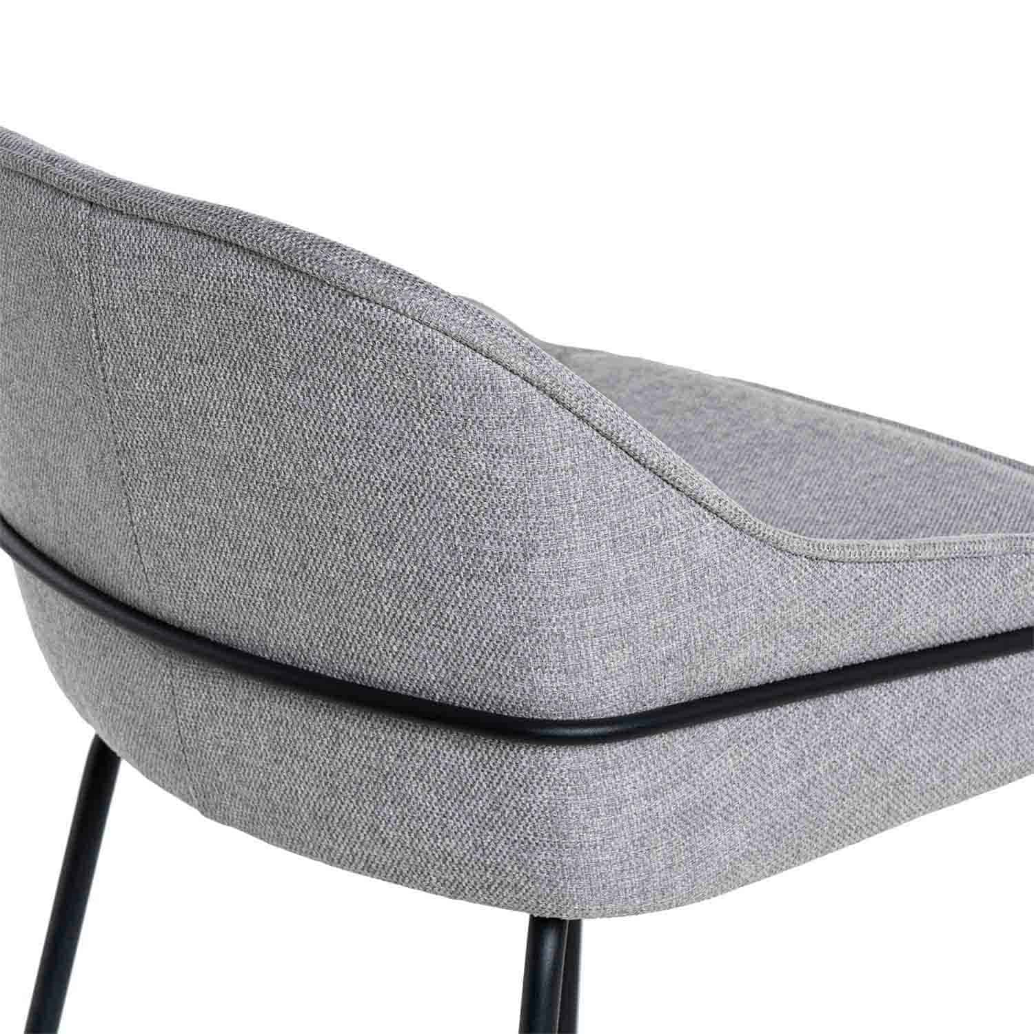 Sedák je čalúnený elegantnou látkou (100% polyester), ktorá jej dodáva neutrálny a sofistikovaný tón. Kovový rám a nohy jej dodávajú moderný a robustný vzhľad.