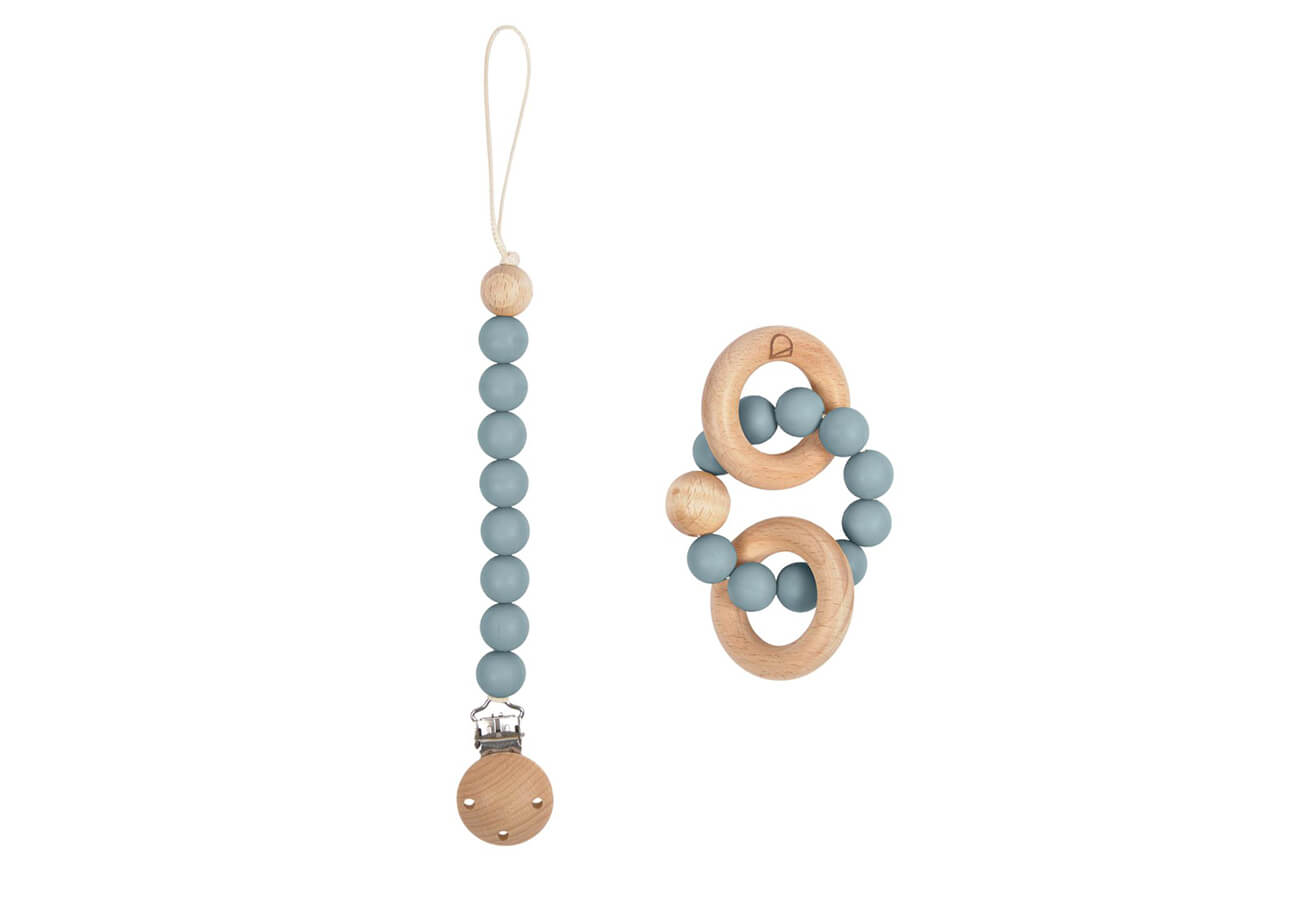 Ak chce váš drobec zjesť na raňajky celý svet, nič by mu nemalo stáť v ceste! Sada cumlíku a hryzátka vyrobená zo silikónu a dreva je navrhnutá tak, aby bola spoľahlivým spoločníkom pri všetkých dobrodružstvách. Vhodné pre deti od 3 mesiacov.