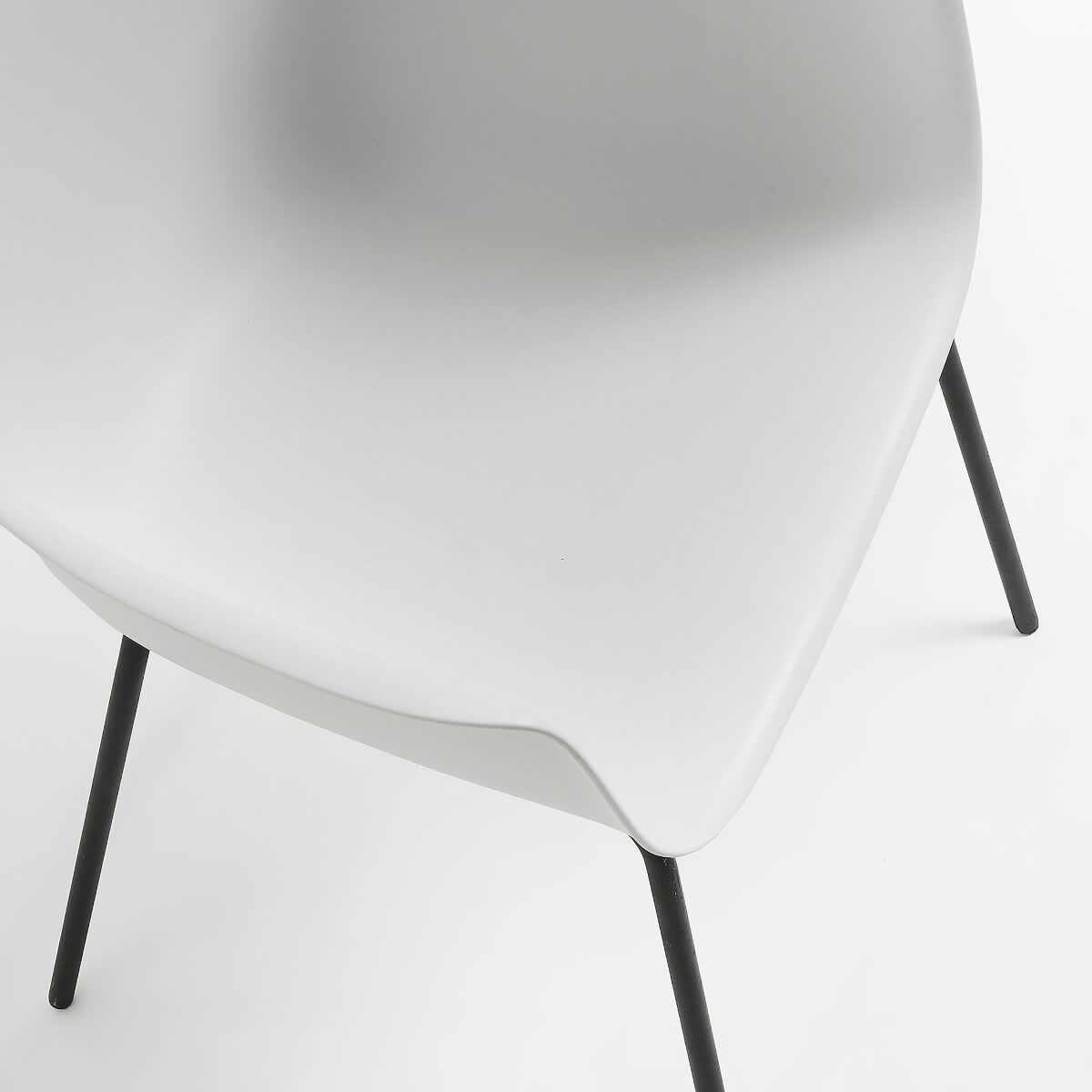 Stolička je vyrobená zo 100% recyklovateľného polypropylénu s matným dizajnom, ktorý spája funkčnosť s elegantnou siluetou.