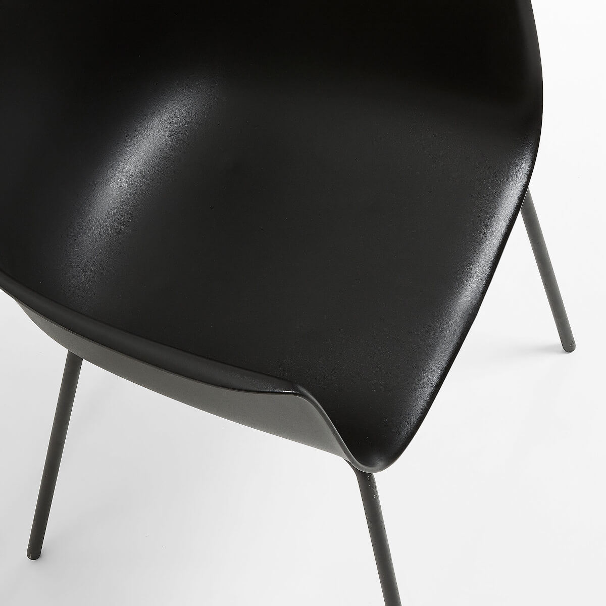 Stolička je vyrobená zo 100% recyklovateľného polypropylénu s matným dizajnom, ktorý spája funkčnosť s elegantnou siluetou.
