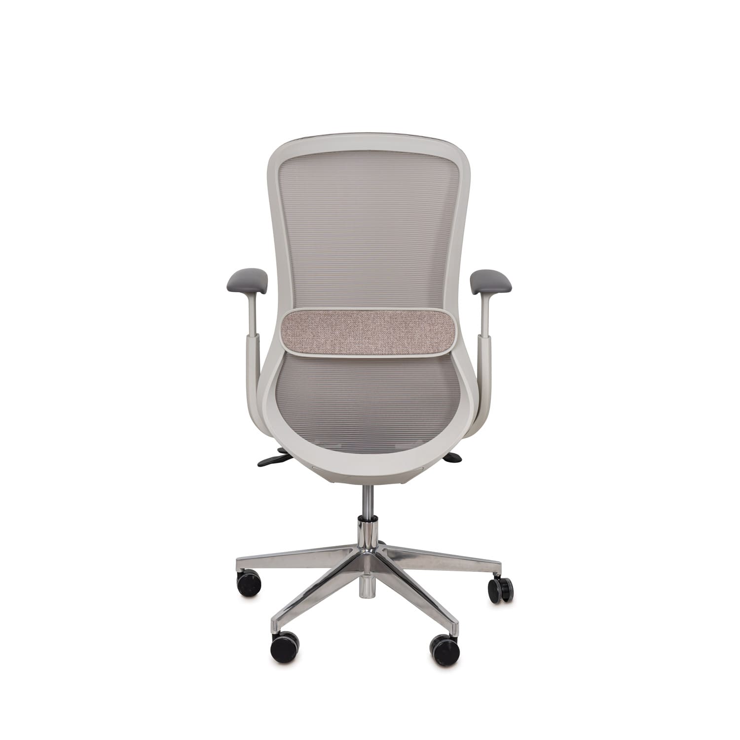 Čalúnenie sedadiel a bedrová opierka majú jednotnú povrchovú úpravu, ktorá dodáva sedadlu sofistikovaný nádych a dokonale ladí so šedými a metalickými tónmi jeho konštrukcie.