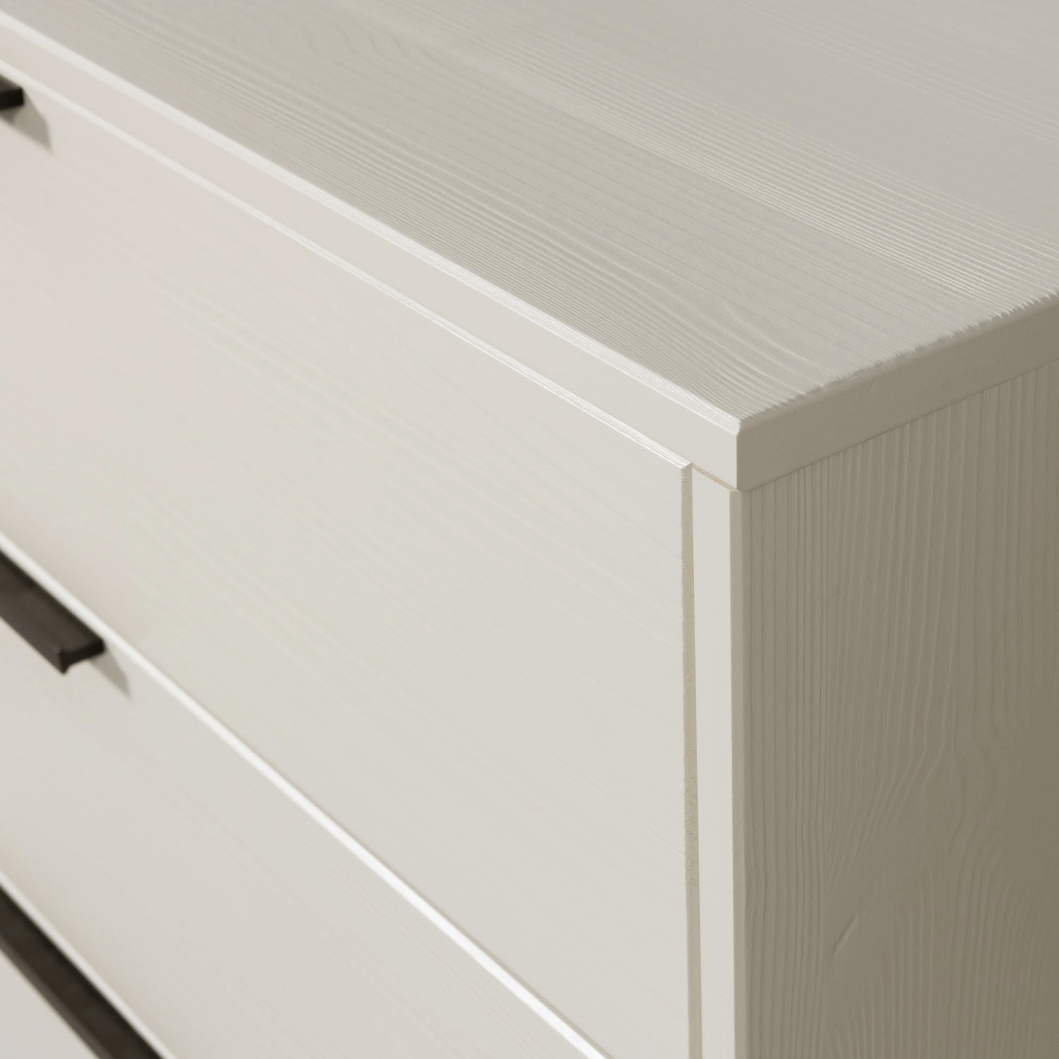 Komoda Silas se vyznačuje moderním a čistým designem, který vynikne v každém interiéru. Nabízí tři prostorné zásuvky, které poskytují dostatek úložného prostoru. Komoda je vyrobena z masivní, hladce opracované borovice, což jí dodává robustní a přirozený vzhled. Podstavec a úchyty jsou elegantně zakončeny matnou černou práškovou barvou, což komodě přidává na stylu.