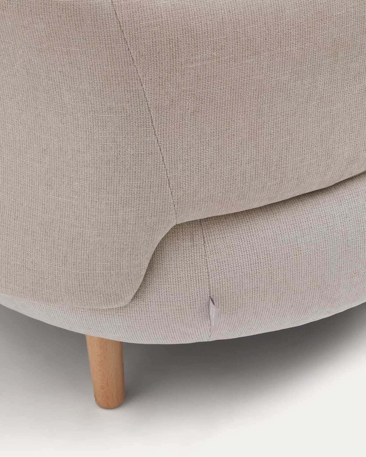 Kreslo je čalúnené látkou chenille v perlovo béžovej farbe, ktorá je opatrená úpravou proti škvrnám, je vodoodpudivá a certifikovaná pre ekologicky bezpečnú a šetrnú výrobu. Nohy kresla sú vyrobené z pevného bukového dreva, čo zaisťuje stabilitu a dlhú životnosť.