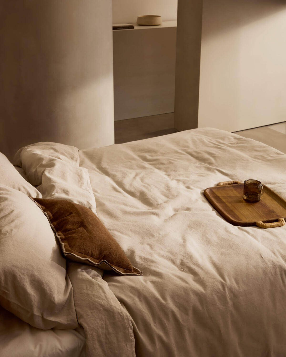 Vyrobené z európskeho ľanu s prímesou bavlny, čo zaisťuje výnimočnú mäkkosť a priedušnosť. Vďaka prirodzene pokrčenému vzhľadu nie je potrebné žehlenie, čo bielizni dodáva autentický a ležérny šarm. Set je vhodný na pranie v práčke a ľahko sa udržuje.