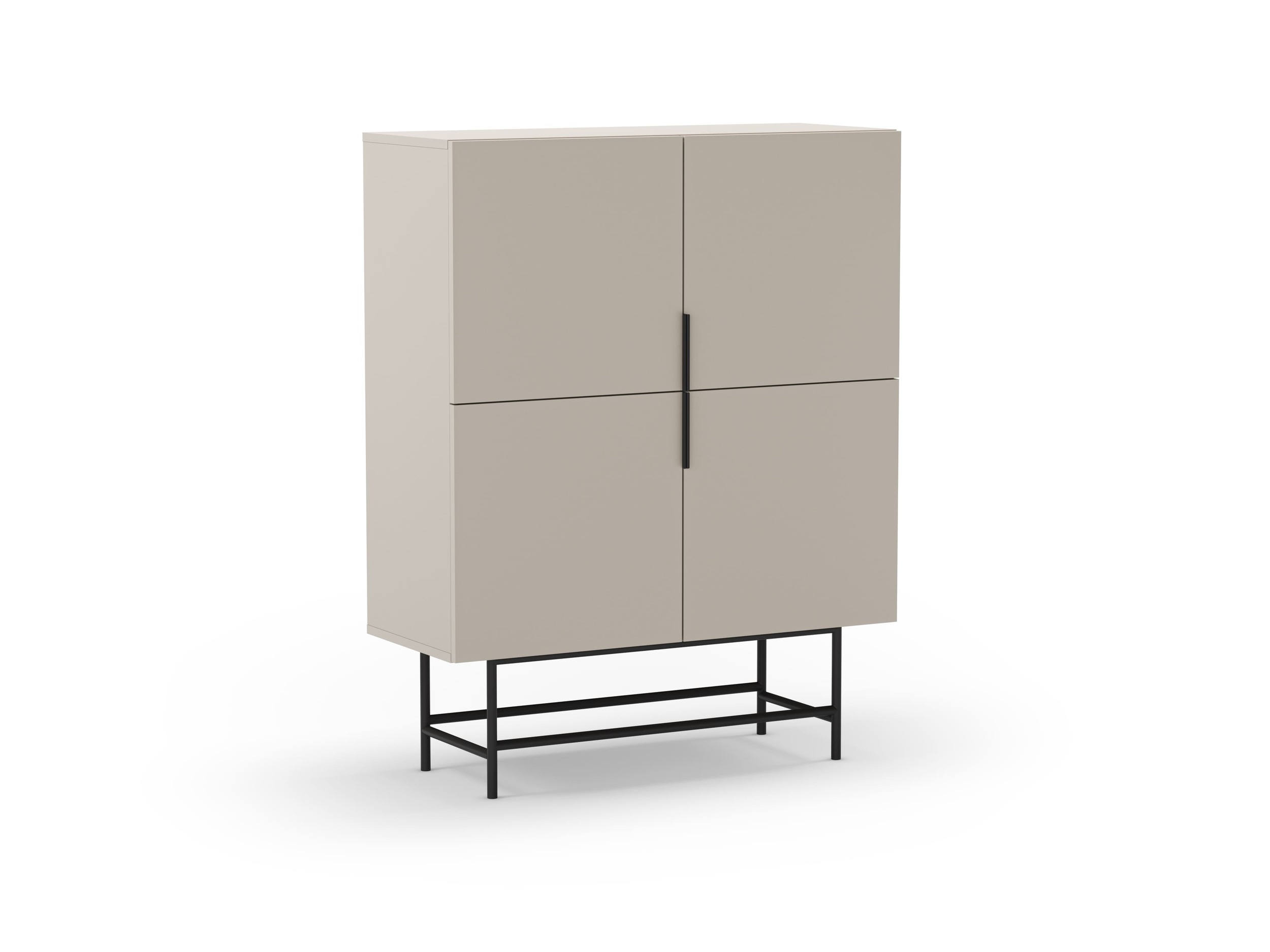 Priestranná vysoká komoda EDZIO prichádza v elegantnej krémovej farbe a škandinávsky inšpirovanom dizajne. Čisté línie bez úchytiek zdôrazňujú jemné skosené hrany dvierok, zatiaľ čo subtílna čierna kovová podnož dodáva vizuálnu ľahkosť a vzdušnosť.