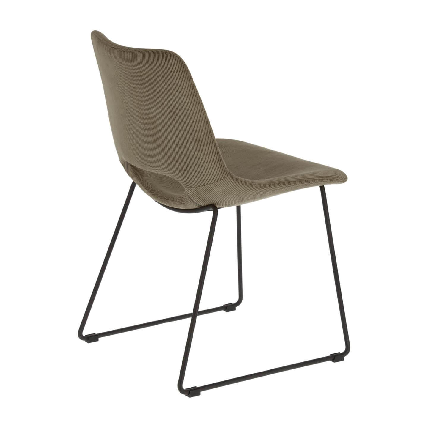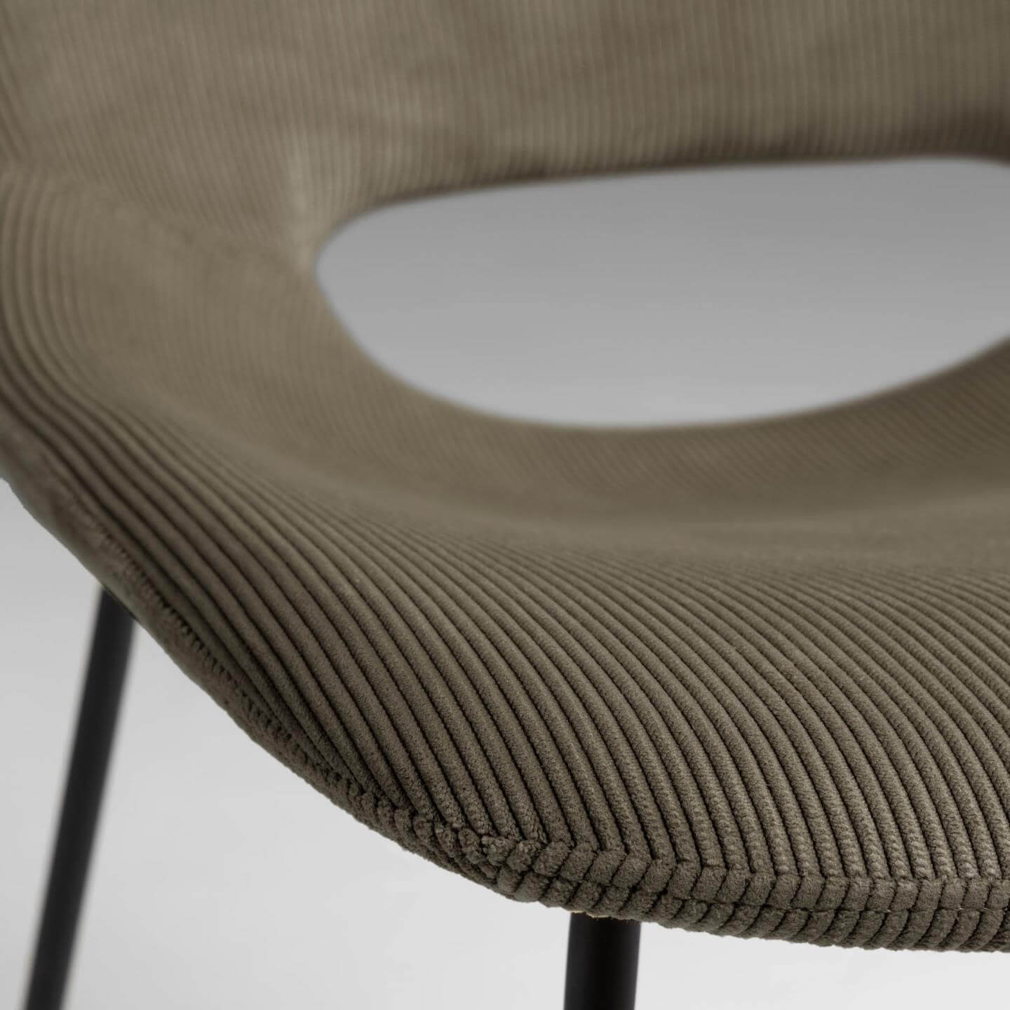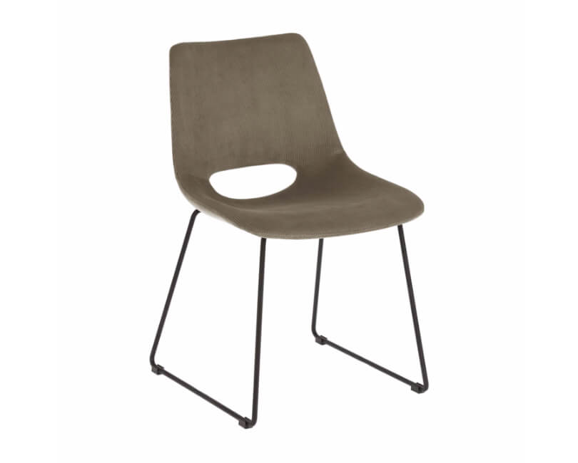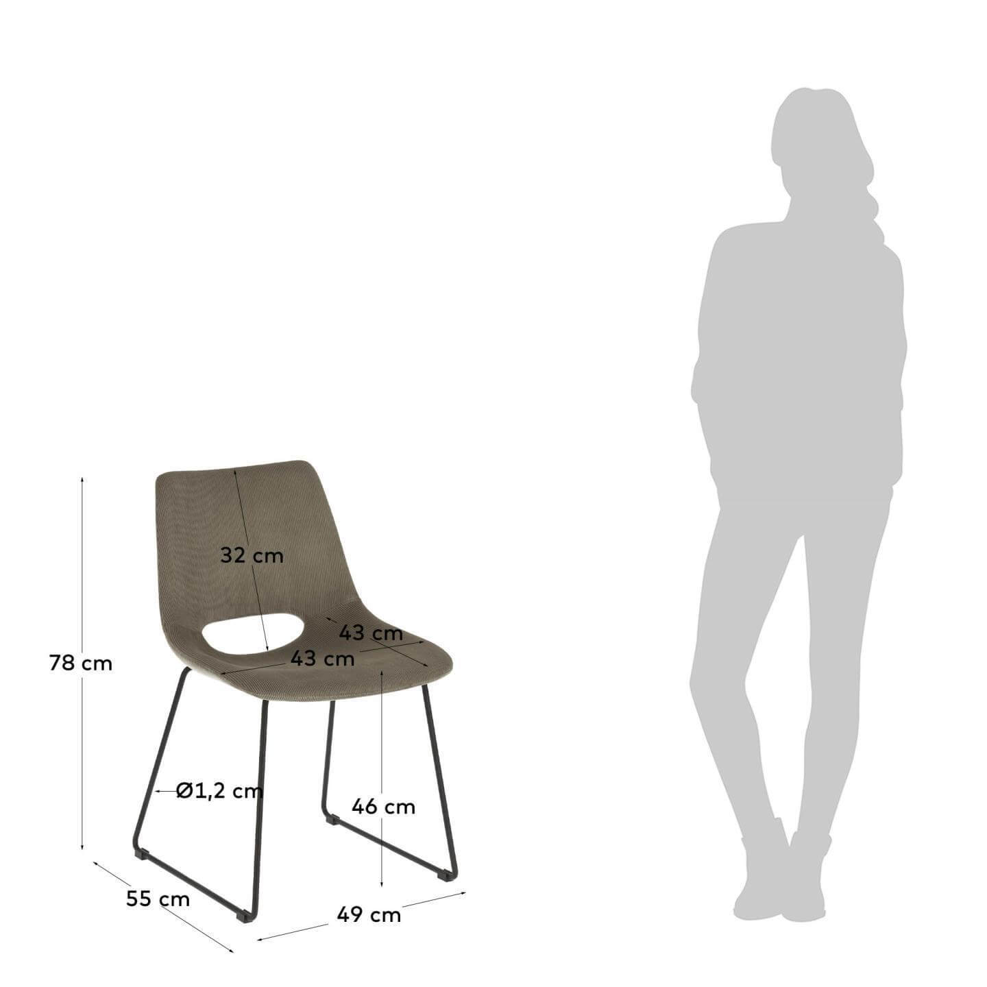 Stolička Mira je čalúnená sivou menčestrovou látkou, vďaka ktorej bude váš život oveľa pohodlnejší, aj keď na nej nebudete sedieť. Táto látka sa ľahko čistí a je odolná voči kvapalinám. Stoličky Mira sú vyrobené so železnou konštrukciou, čierno maľované a s ochranou na nohách, aby sa vaše podlahy nepoškodili.