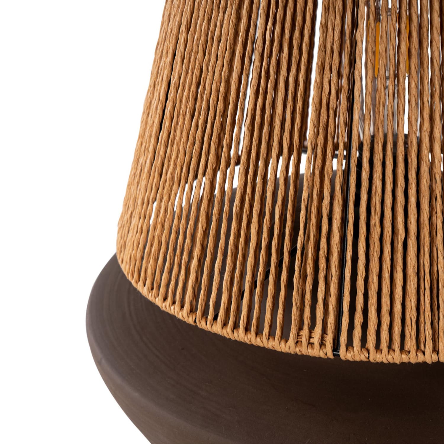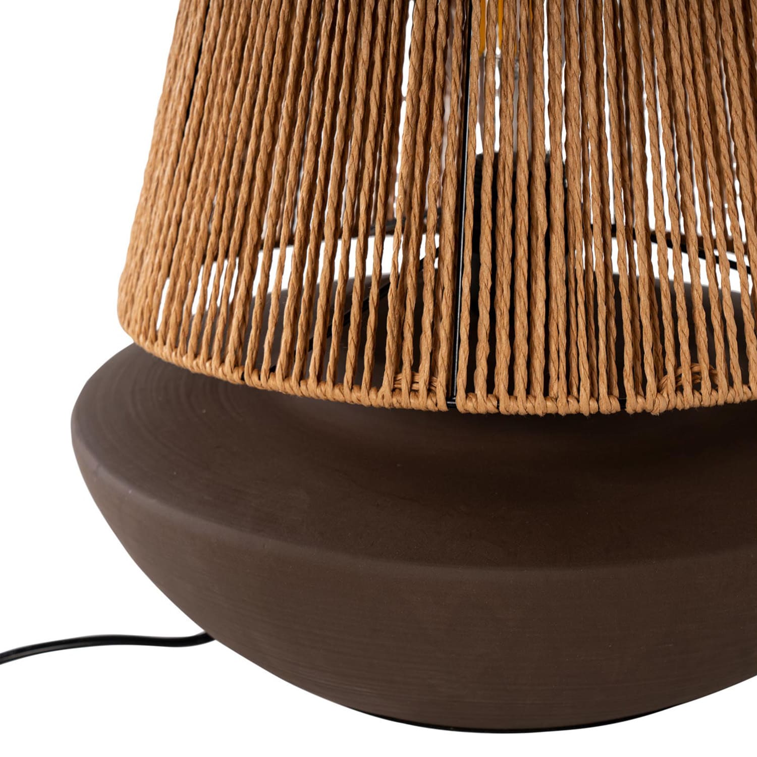 Jej hnedá keramická základňa nielenže poskytuje robustnú a stabilnú konštrukciu, ale taktiež dodáva dekorácii nádych elegancie. Tienidlo z konopného lana rozptyľuje mäkké, obklopujúce svetlo a vytvára útulnú a relaxačnú atmosféru.