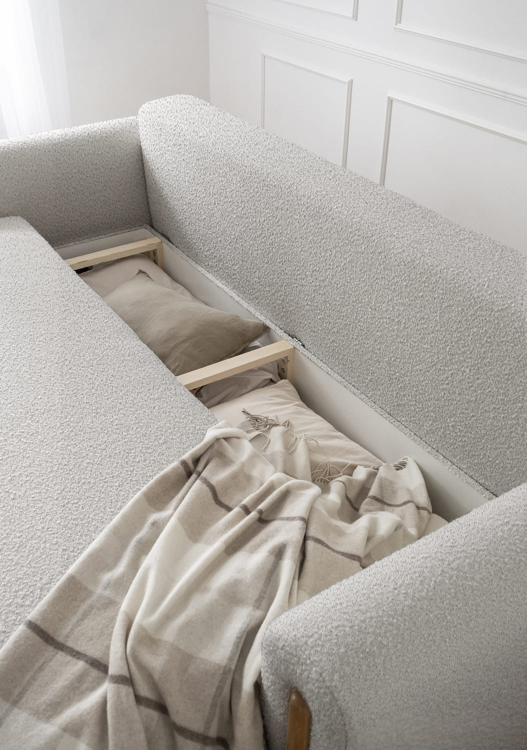 Navyše ponúka praktický úložný priestor, ktorý je ideálny na uschovanie vankúšov, diek alebo iných drobností, a dá sa jednoducho rozložiť na spaciu plochu, čím poskytuje pohodlie aj na prespanie.