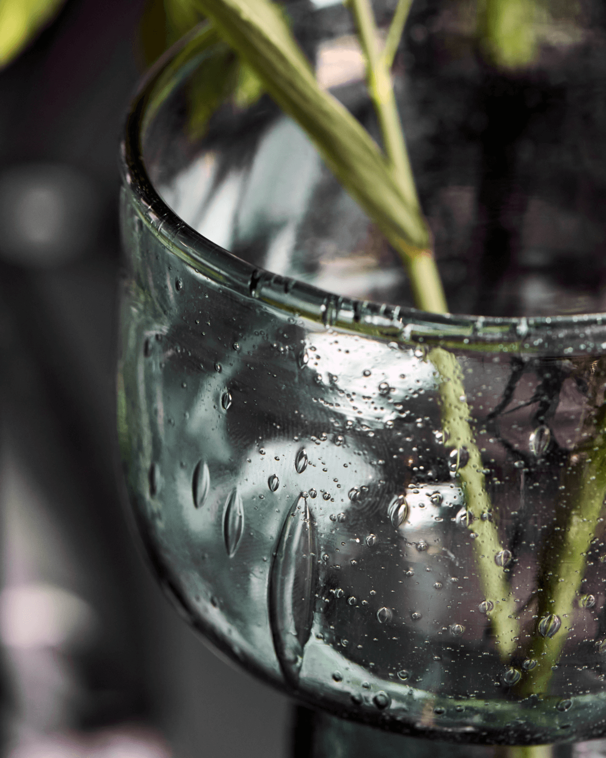 Váza Ruu je vyrobená zo skla a navrhnutá tak, aby dokonale vynikli malé kytice alebo jednotlivé kvety, ako sú hyacinty. Jej priehľadná konštrukcia ľahko zapadne do akéhokoľvek interiéru a zároveň dodá elegantný nádych. Skvele sa kombinuje so zelenými vázami z rovnakej série pre štýlový a jednotný aranžmán na jedálenskom stole alebo okennom parapete.