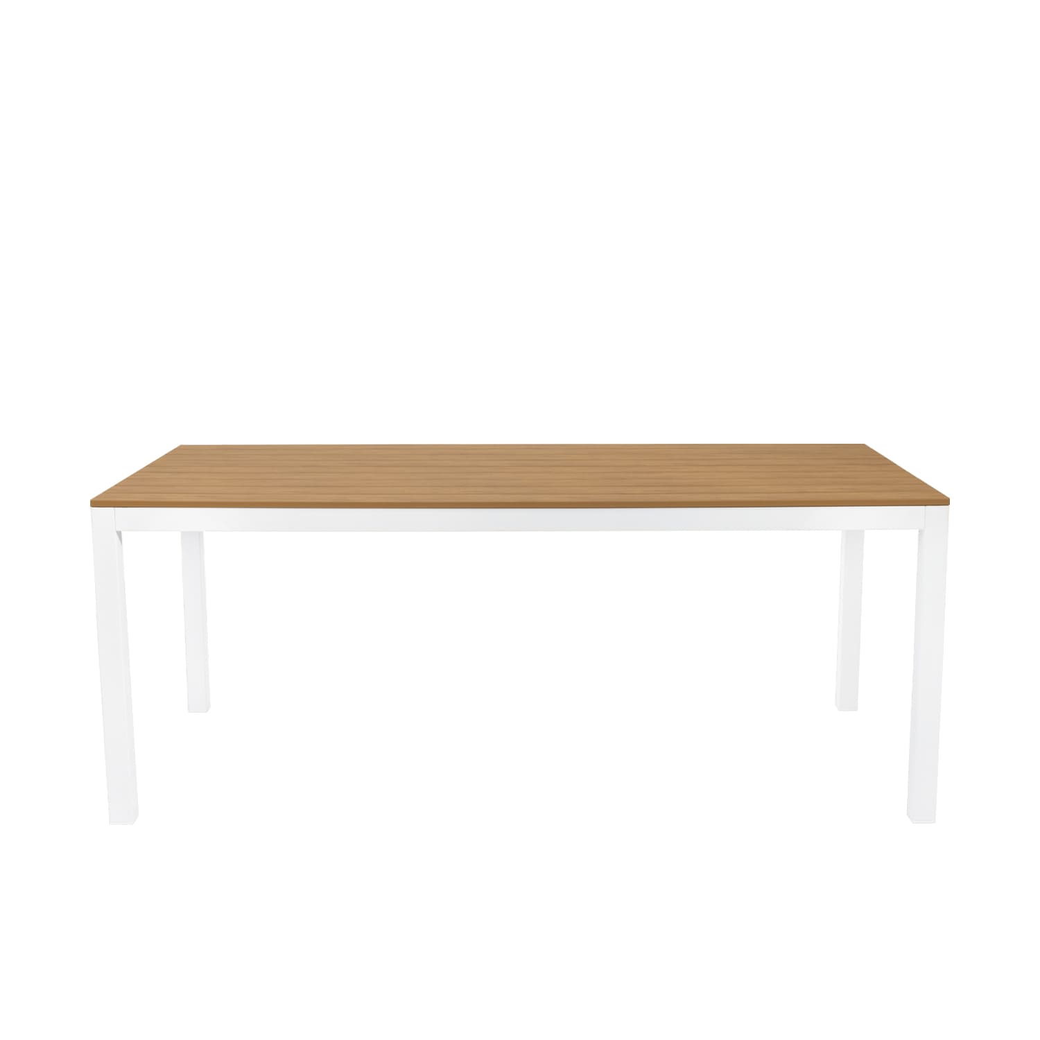 Jeho vrchná doska je vyrobená z polywoodových dosiek s prírodnou povrchovou úpravou, ktorá evokuje teplo dreva, ale má tú výhodu, že je prakticky bezúdržbový materiál, odolný voči poveternostným vplyvom a ľahko sa čistí.
